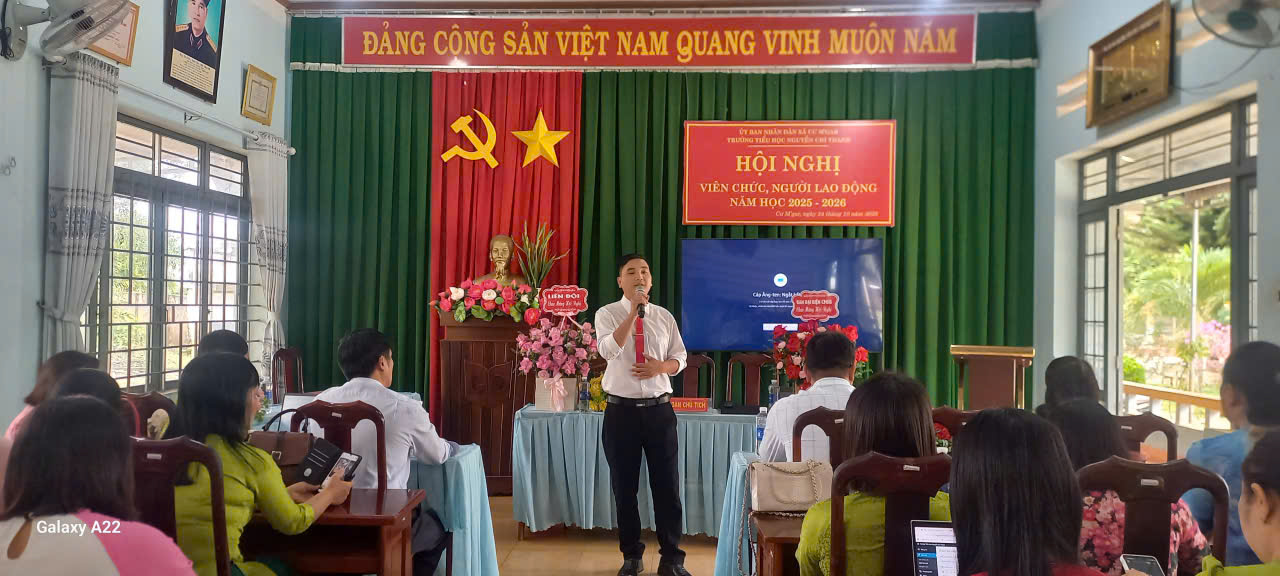 Hội nghị Viên chức – Người lao động năm học 2025–2026 của Trường Tiểu học Nguyễn Chí Thanh đã diễn ra thành công tốt đẹp, mở ra một năm học mới với nhiều niềm tin, quyết tâm và kỳ vọng, là dấu ấn khẳng định tinh thần đoàn kết, sáng tạo và đổi mới của tập thể sư phạm Trường Tiểu học Nguyễn Chí Thanh – những người luôn nỗ lực vì mục tiêu “Dạy tốt – Học tốt – Xây dựng trường học hạnh phúc”.
