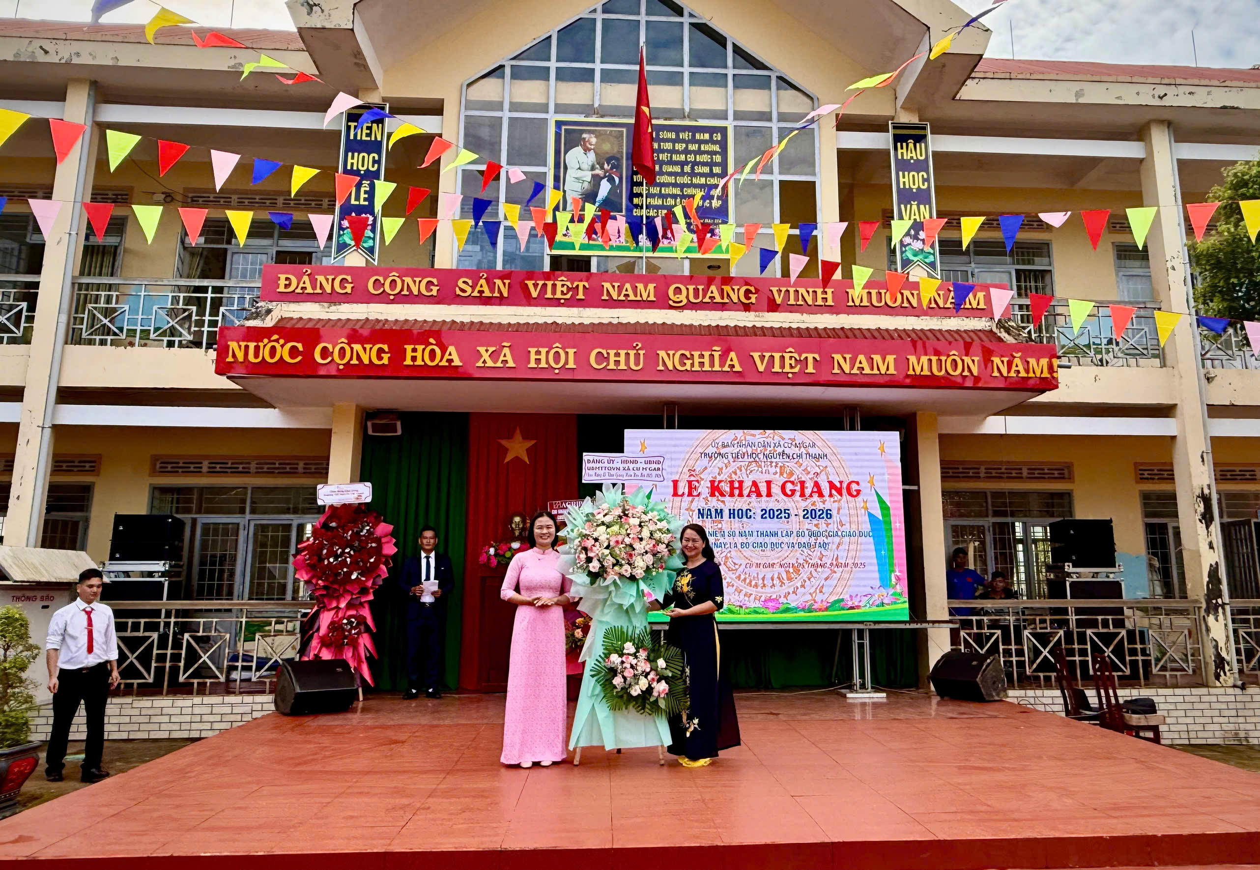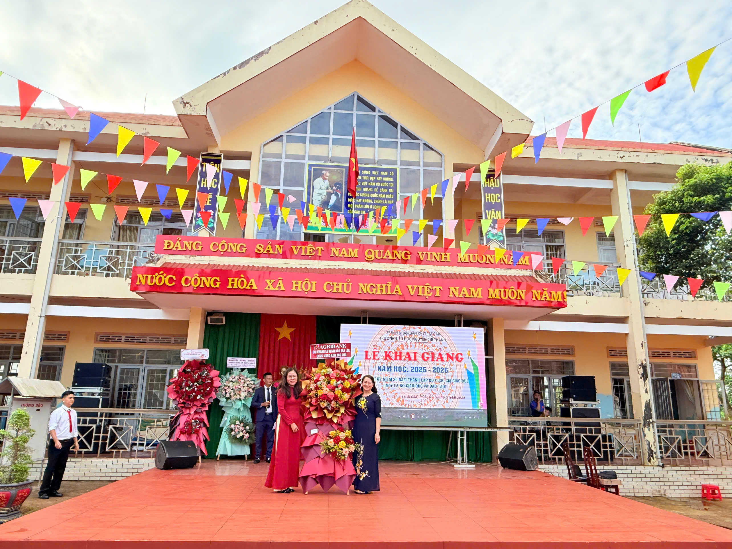Buổi lễ khai giảng của trường rất vinh dự được đón đại biểu đại diện các ban ngành, đoàn thể, chính quyền địa phương, các bậc phụ huynh cũng về tham dự và tặng hoa chúc mừng.